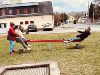 Nach der Rückkehr wartete ein gemütlicher Teil des Tages auf alle Teilnehmer. Bei Kaffee und einer großen Auswahl an selbstgebackenen Kuchen wurde gemeinsam gelacht, erzählt und das Miteinander genossen. Während die Kinder anschließend den Spielplatz eroberten und nach Herzenslust spielten, nutzten die Erwachsenen die Gelegenheit für entspannte Gespräche und einen regen Austausch.