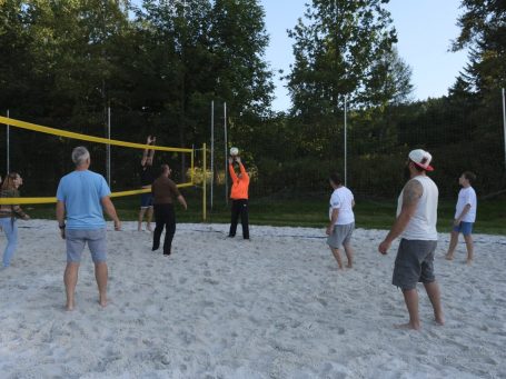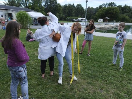 Samstag: Frühstück, viel Baden & Planschen, Kaffee und Kuchen und Mannschaftsspiele am Nachmittag.